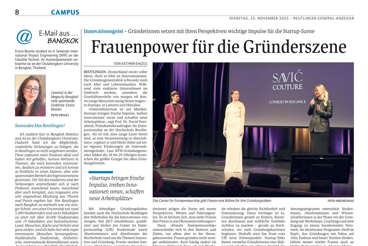 Der Hauptartikel thematisiert "Female Entrepreneurship", denn Gründerinnen setzen mit ihren Perspektiven wichtige Impulse in der Startup-Szene. Das Center for Entrepreneurship fördert die jungen Unternehmerinnen mit gezielten Angeboten und schafft ein offenes Umfeld für einen inspirierenden Austausch.