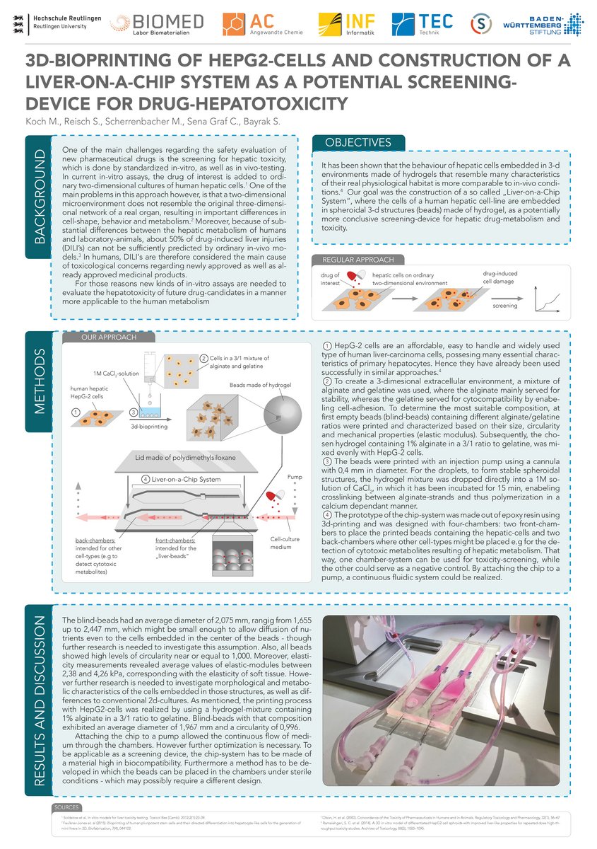 Ziel dieses Projekts war es, ein liver-on-a-chip System zu konstruieren, mit dem die Hepatotoxizität von Arzneimitteln untersucht werden kann. Dies ist ein wichtiges Thema, da jedes Medikament oder Therapeutikum bei der Sicherheitsevaluation unbedingt auf Hepatotoxizität getestet werden muss. Bei den derzeitigen In-vitro-Modellen werden zweidimensionale Zellkulturen verwendet, die physiologisch nicht repräsentativ sind. Um die Diskrepanzen bei der Zellmorphologie, der Physiologie und dem Stoffwechsel zu beseitigen, haben die Studenten dieses Projekt mit dem Ziel durchgeführt, den derzeitigen Stand der Technik zu verbessern. Es wurde ein dreidimensionales liver-on-a-chip System konstruiert. Die Ergebnisse werden in dem zugehörigen Poster vorgestellt oder können im zugehörigen YouTube-Video angesehen werden.